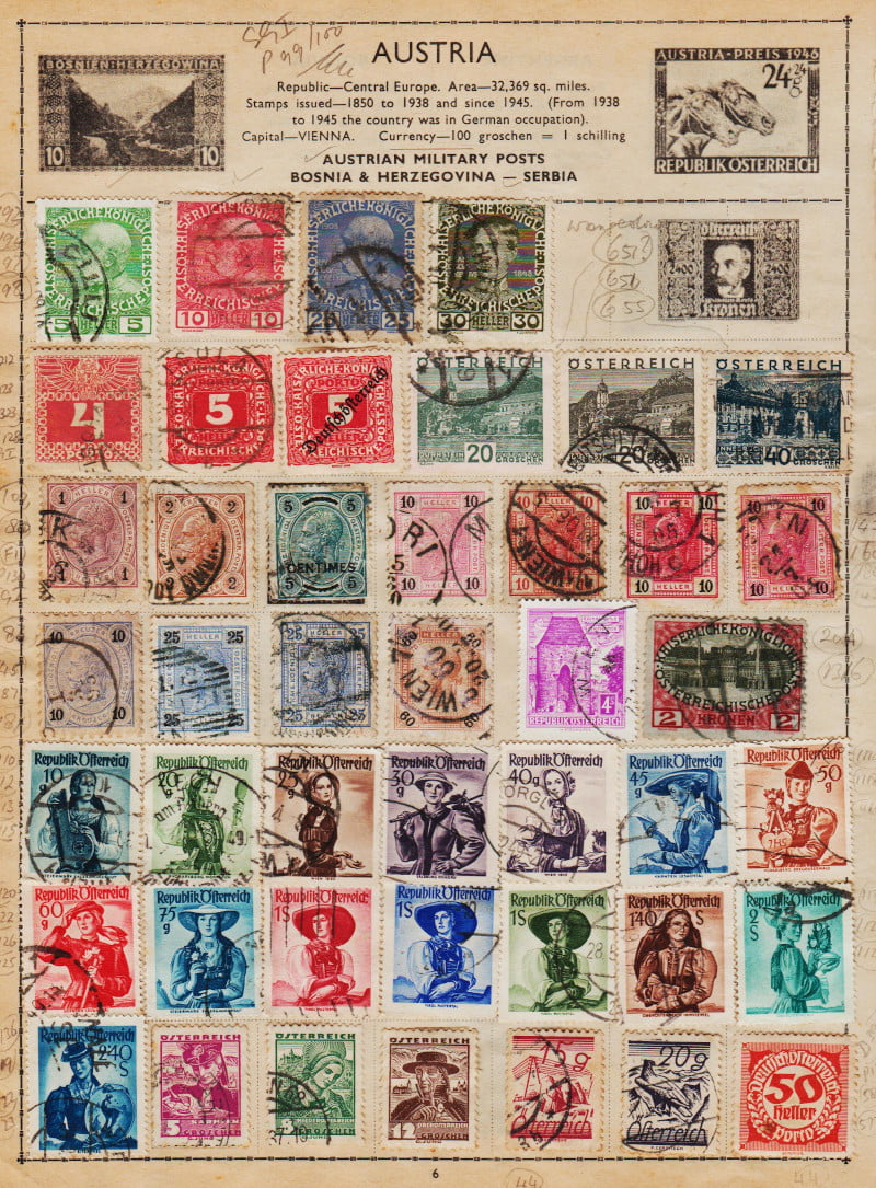 Album J was an album for stamp collectors to stick their stamps into. So this is exactly what was done. We decided to loosen the pages for ease of handling and then placed them in a file. The pages also have pre-printed images, but on some pages, the collector obviously had too many stamps, so he stuck them closely next to each other. This meant that scanning the stamps was quite a challenge. As most experienced stamp collectors are of the opinion that it is better to leave the stamp on paper rather than soak the stamp off, this is what we did.