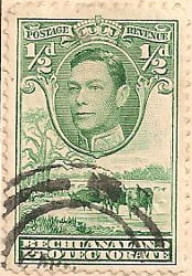 Bechuanaland postage stamps were issued from 1888 until 1966. Originally overprinted, from 1932, the first stamps were inscribed “Bechuanaland Protectorate”. When the South African Rand was introduced in 1961, it was necessary to place a surcharge on the existing definitive stamps until the new ones were issued. In 1966, Bechuanaland became Botswana and stamps from then were marked “Botswana”.