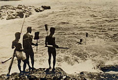 After Arthur Tindall, a trader came to the island a few years later, this became a regular happening. The fishermen on the island were used to fishing in the shark infested waters. But it meant that sometimes it took the swimmer up to six hours because of the strong currents, to retrieve a tin dropped only a mile off shore. In stormy weather, this system did not work at all.